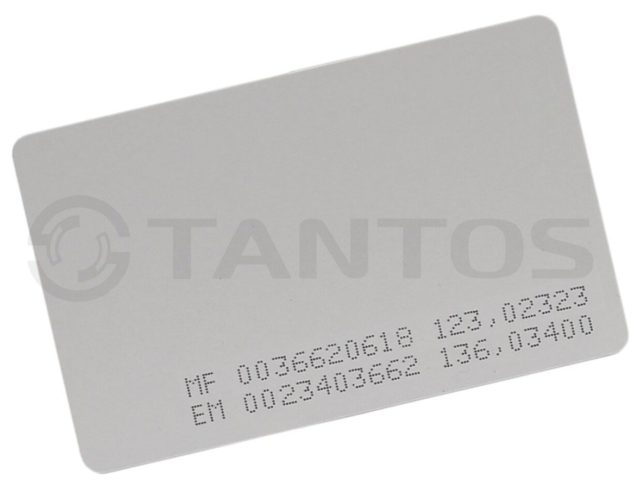 Бесконтактная карта доступа форматов Mifare (13,56 МГц) и EM-Marin (125 kГц).