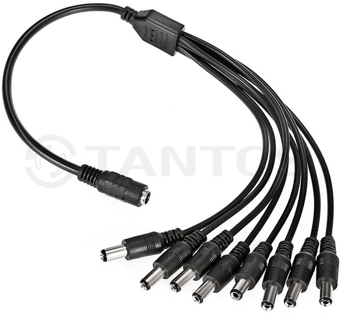 Соединительный кабель для разветвления линии питания (1 гнездо DC на 8 штекеров DC) позволяет подключить к одному блоку питания несколько камер или микрофонов
