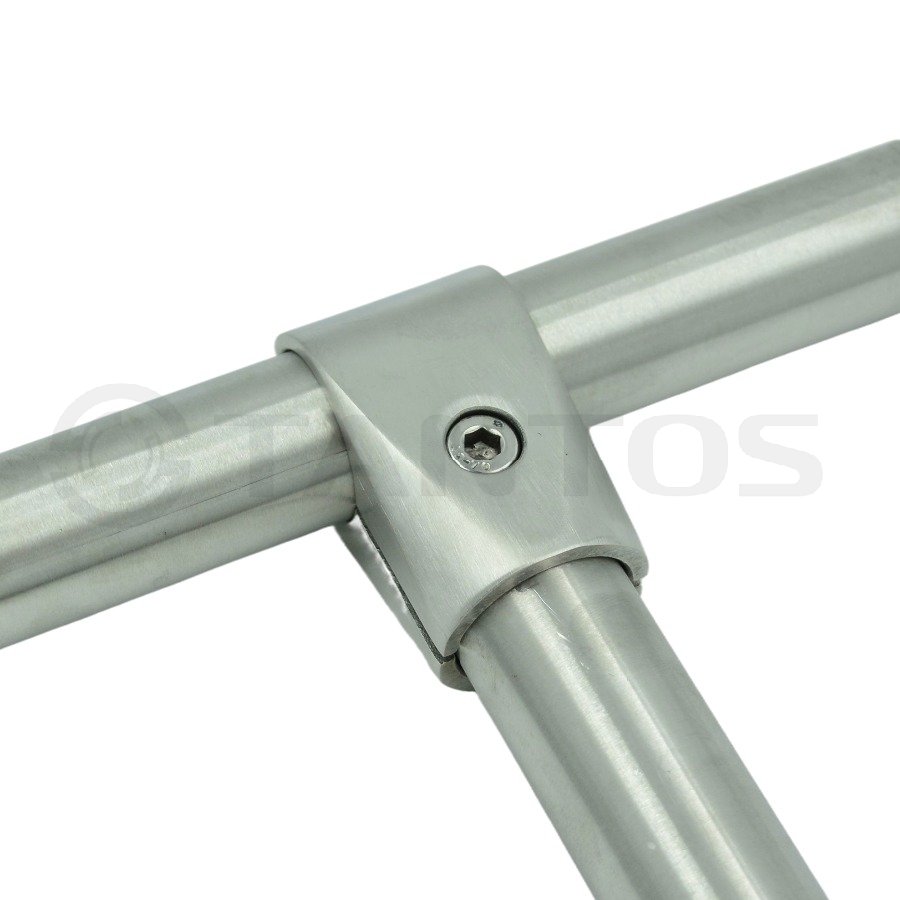 Соединитель TSb-MH применяется для создания Т-образного соединения горизонтальных перемычек (поручней) диметром 32 мм. Материал: шлифованная (до 1.07.2025 полированная) нержавеющая сталь AISI 304.