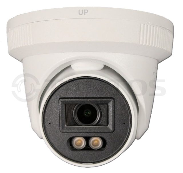 Уличная купольная IP-камера 4 МП с разрешением 2688 x 1520, сенсором 1/1.8", объективом 2.8 мм, адаптивная белая подсветка до 30м. PoE; встроенный микрофон; IP67; рабочая температура от -40 до +60°С.