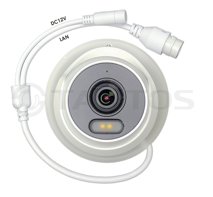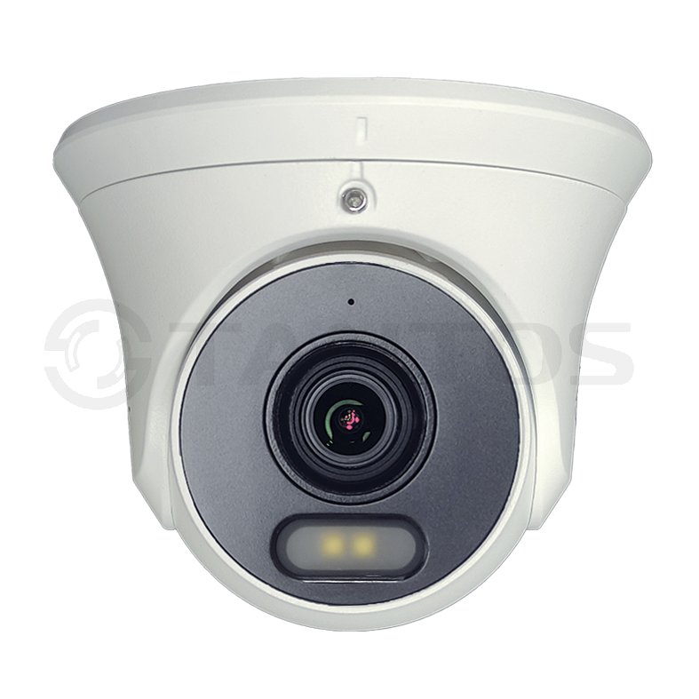 Уличная купольная IP-камера 2 МП с разрешением 1920 x 1080, сенсором 1/2.8", объективом 2.8 мм, адаптивная белая подсветка до 30м. PoE; встроенный микрофон; IP67; рабочая температура от -40 до +60°С.