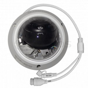 Уличная купольная IP-камера 5 МП с разрешением 2880 x 1620, сенсором 1/2.7", объективом 2.8 мм, адаптивная ИК подсветка до 30. PoE; встроенный микрофон; IP67, IK10; рабочая температура от -40 до +60°С.